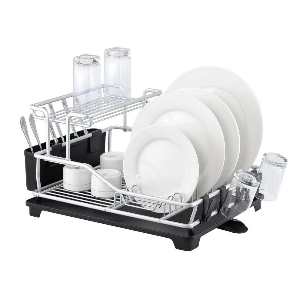If you’re often washing a large volume of dishes, a two-tiered stainless steel dish drying rack maximizes vertical space. These towering designs offer double the drying capacity, perfect for big families or those without a dishwasher. Many include separate compartments for flatware and hooks for mugs or glasses.